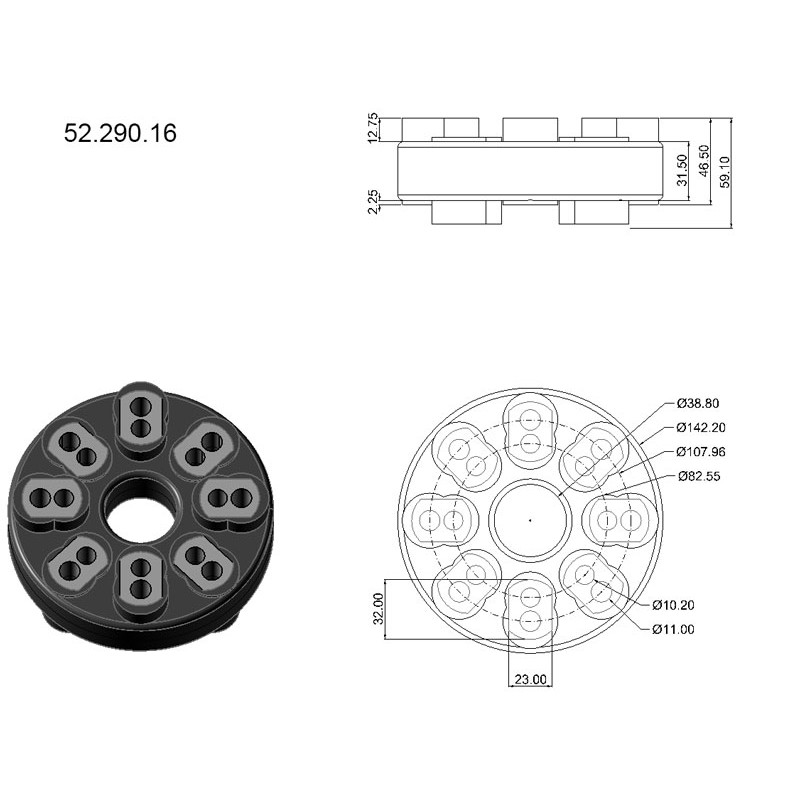 Accouplements élastiques. A introduire entre axe hélice et inverseur. Fabriqués en caoutchouc nitrile, sur douille en aluminium.