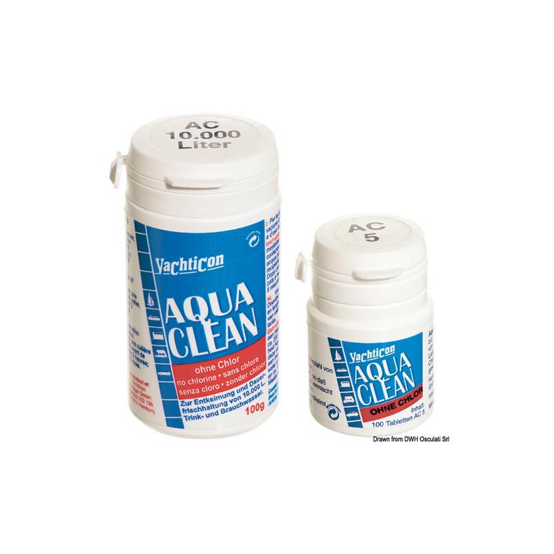 Produit « Allemand » original servant à stériliser et conserver pendant plusieurs mois (jusquà 6) leau fraîche des réservoirs flexibles ou rigides. Vendu en flacon de 100 g avec doseur. Chaque gramme stérilise 10 litres deau. Cest un produit sans chlore et conforme aux normes allemandes pour la consommation, en solution : 1:10.000. Pot de 100g ou paquet de 100 pastilles (chaque pastille sérilise 5 litres d'eau).