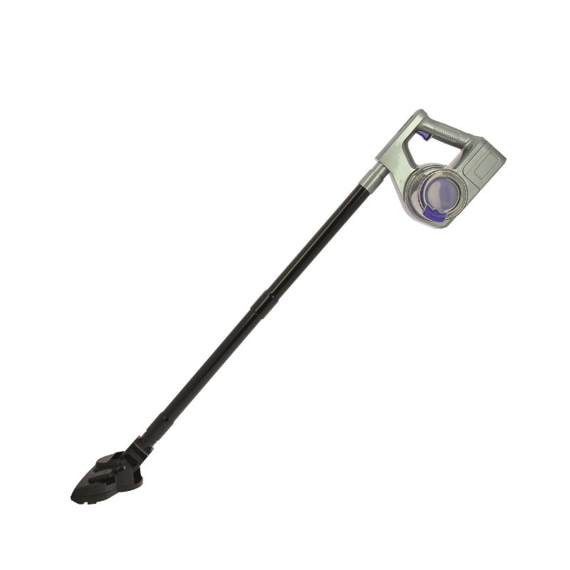 Aspirateur-balai polyvalent, sans sac et sans fil. Muni d’une batterie rechargeable alimentée en 220 V.
