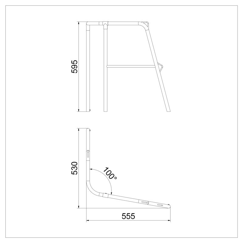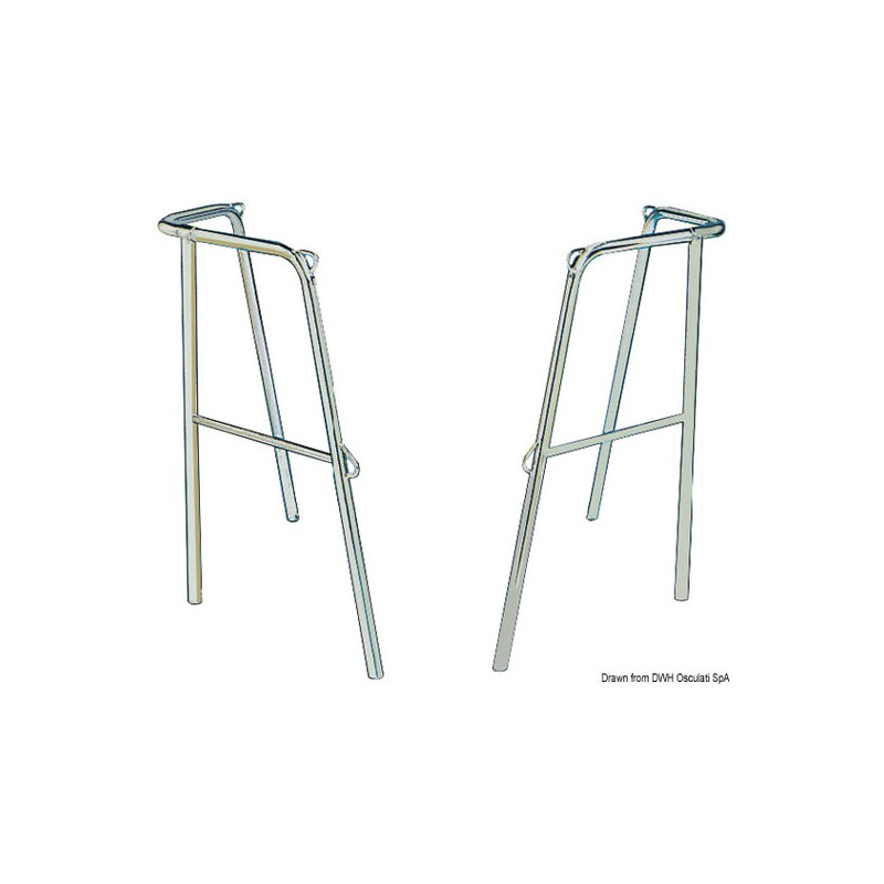 Largeur (vu par derrière) 40 cm. Flanc 43 cm. Angle d'ouverture 100°. Hauteur 60 cm. Tubes de 22 mm, en inox polis miroir avec platines pour fixation sur le pont. Avec tube intermédiaire de renfort.