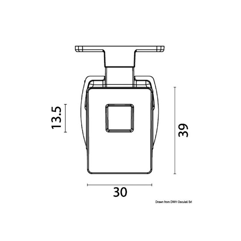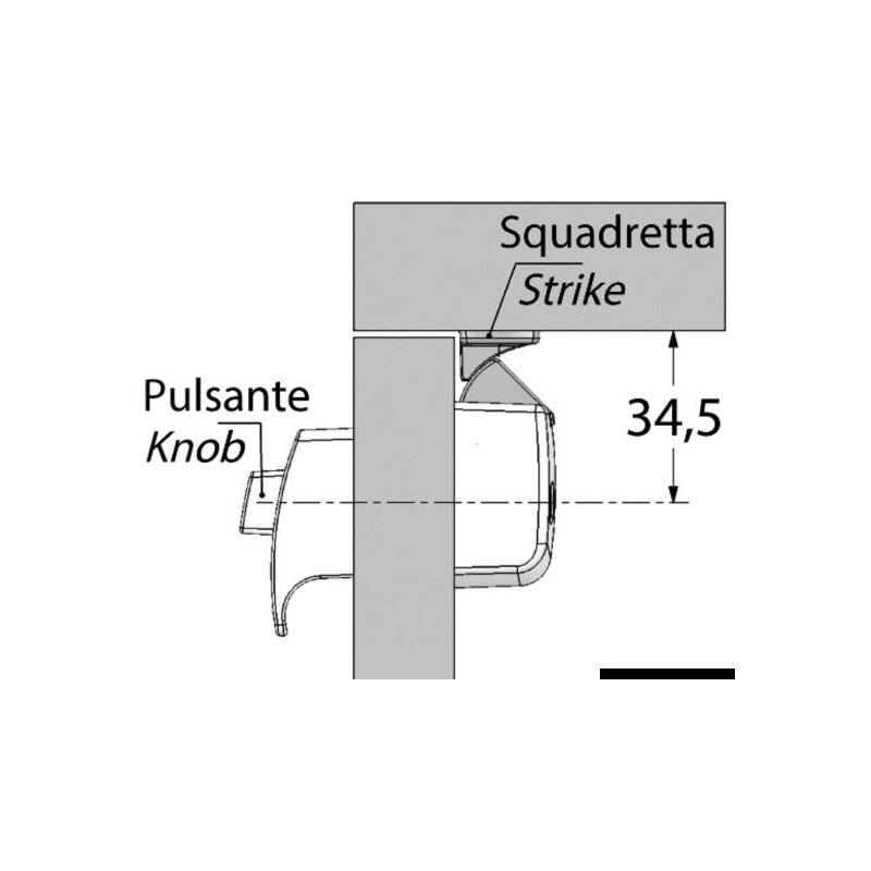 Bouton d'ouverture de porte en laiton chromé. Pour épaisseurs 13/16/19/23 mm. Dimensions : 30x40x21,5. Voir autres cotes sur le schéma fourni.