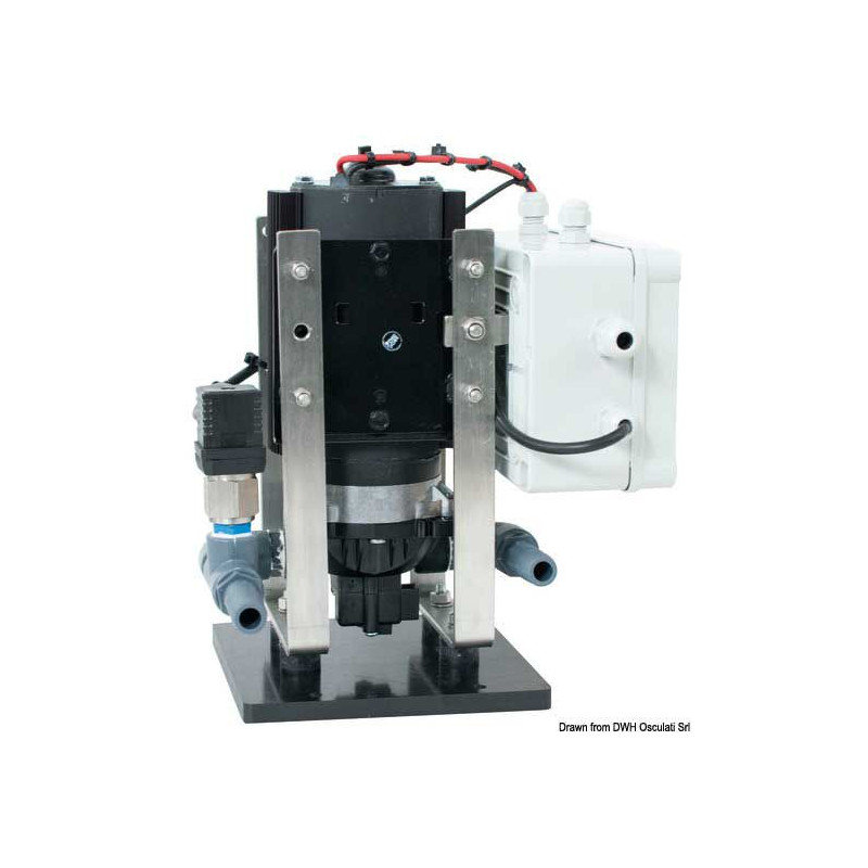 Léger et économique, peut être placé sur tous types de bateaux grâce à ses dimensions compactes. Une utilisation simple et intuitive est garantie à portée de clic. Contenu du kit: • Dessalinisateur avec Energy Recovery System; • Pompe d'alimentation avec filtre eau de mer; • Filtre à charbons actifs avec électrovanne; • Préfiltre de 5 micron; • Tuyau de production eau douce (5 m); • Tableau de commande. Fonctions du panneau à distance: • Start/stop à distance; • Minuteur production; • Rinçage dessalinisateur; • Alarmes. Caractéristiques techniques : Alimentation 12 V. Consommation 110 W. Débit 30 l/h. Membrane 2,5"x21". Poids 19 kg.