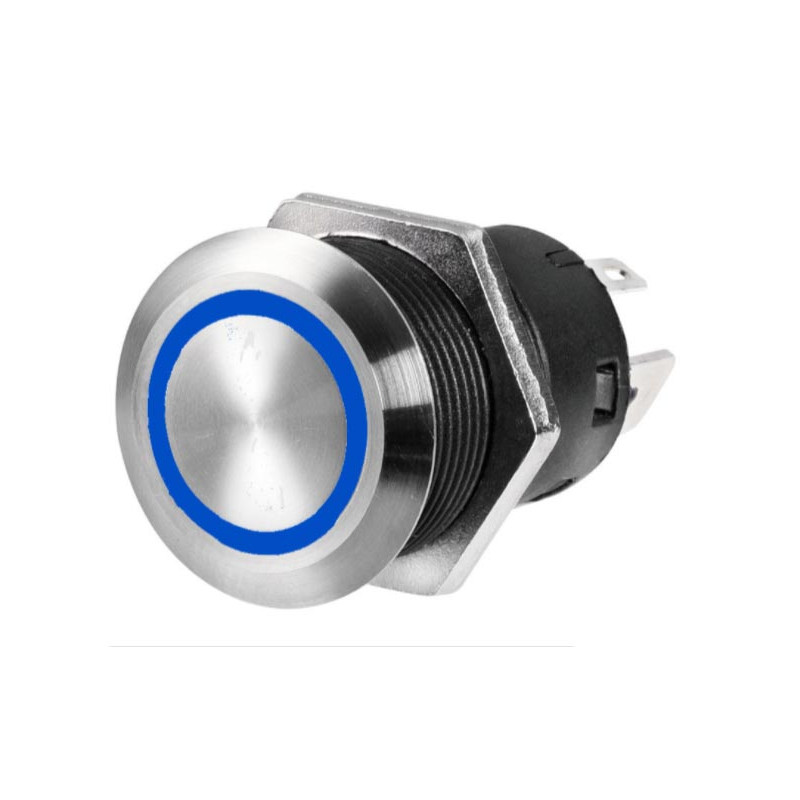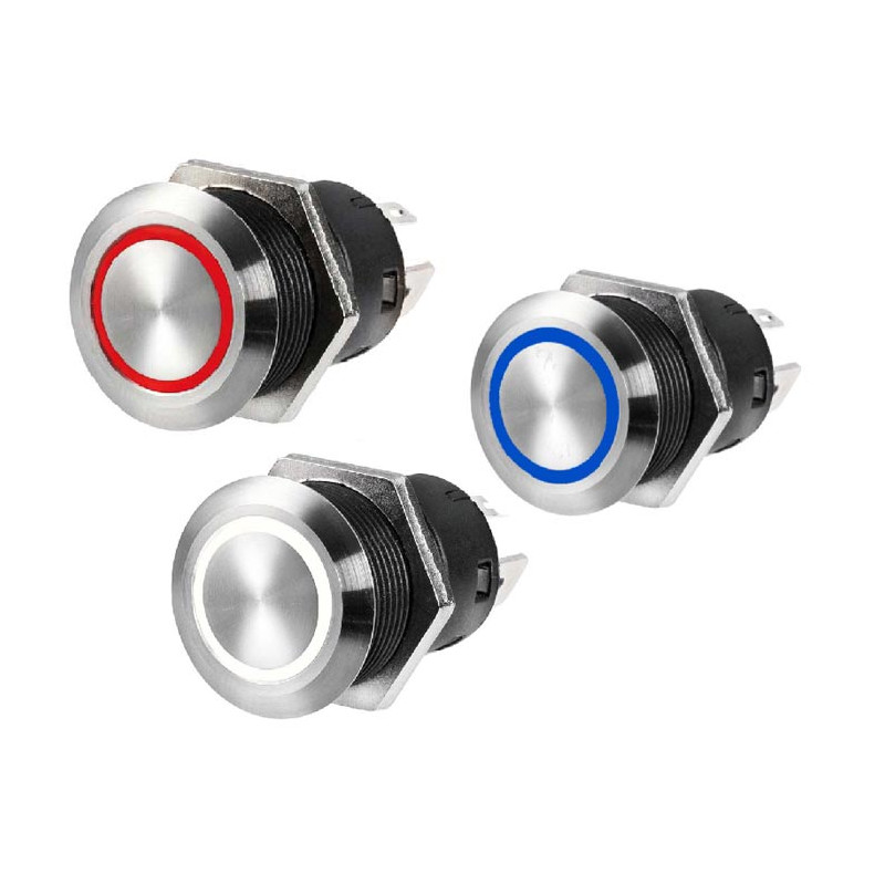 Interrupteurs design en inox AISI 316 avec couronne lumineuse à LED, témoin d'allumage et diode de veille.