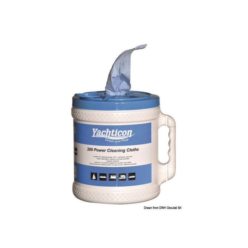 Cleanin Clooth Dispenser YACHTICON. Lingettes super absorbantes pour le nettoyage du bateau. Résistantes au mouillé, aux déchirures et aux acides. Boîte de 200 lingettes cm 38x24.