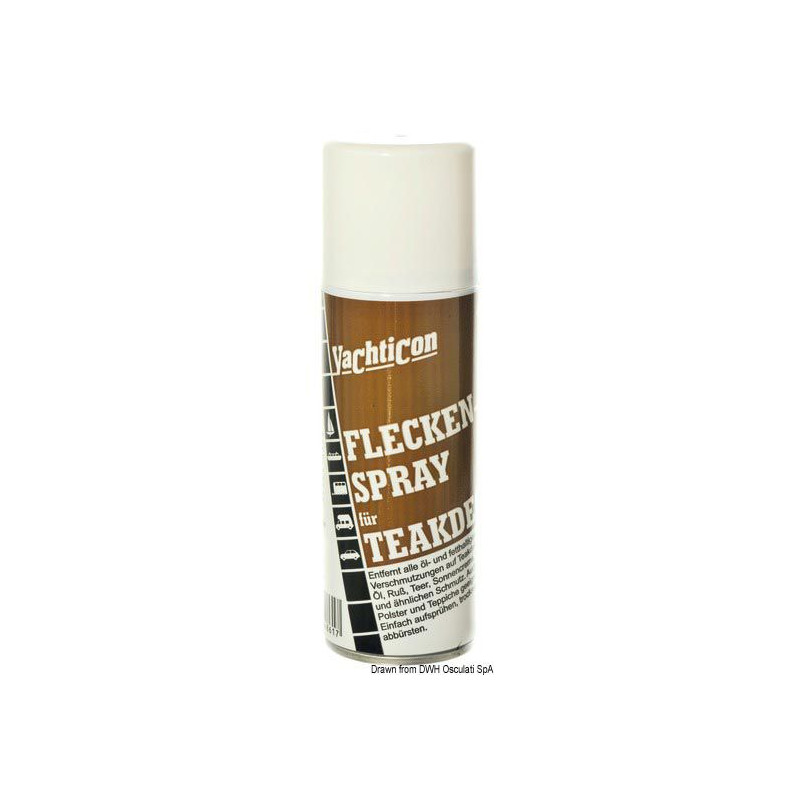 Supprime taches d'huile, de gras, de crème solaire, de colle, etc. sur le teck. Indiqué aussi pour moquette et tapis