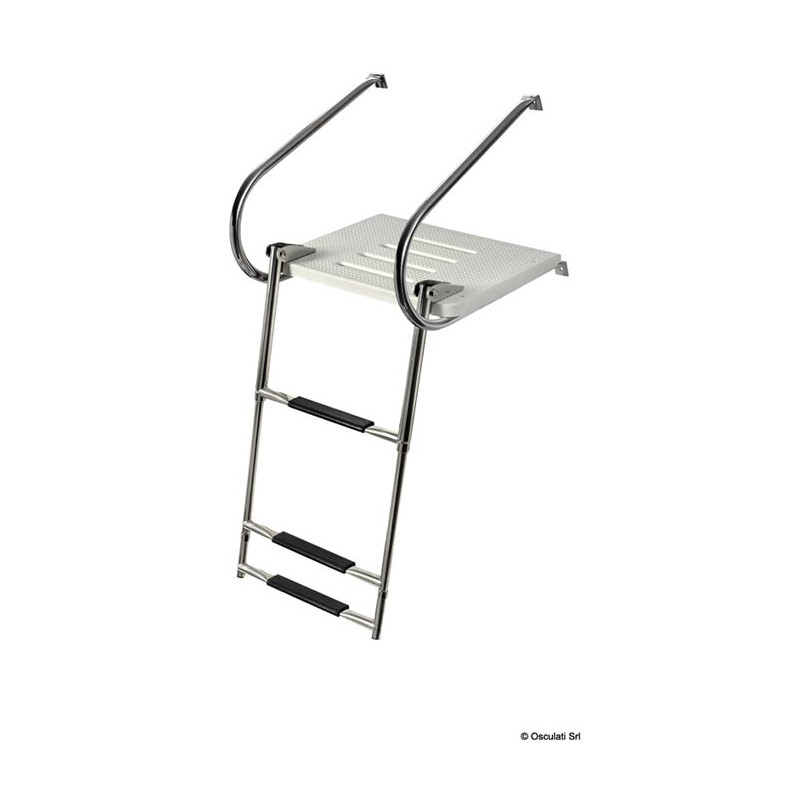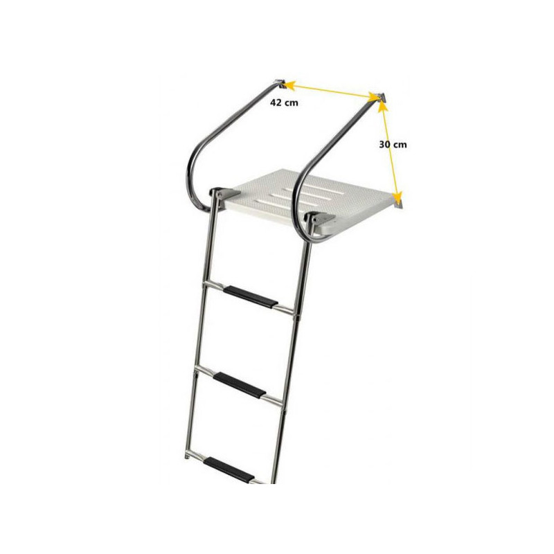 Passerelle (+ echelle) avec châssis en inox AISI 316. Modèle universel. Largeur : 45 cm. Profondeur : 35 cm. Ø tube : 22 mm.