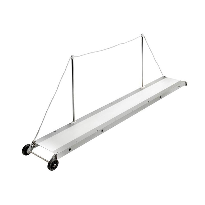 Passerelle fixe en alliage léger anodisé avec surface antidérapante blanche.