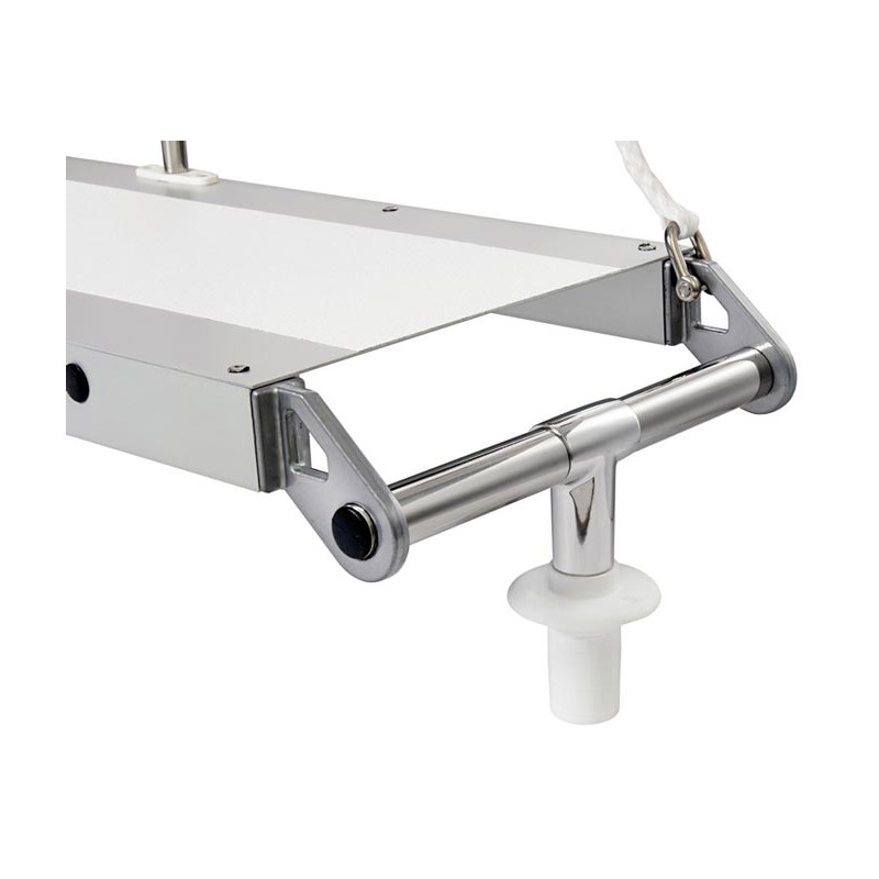 Longueur : 2m. Largeur : 33 cm. Complète de 2 chandeliers en inox, roulettes, pivot en inox et platines de fixation.