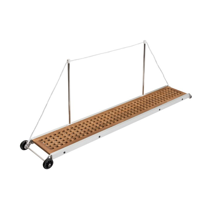 Passerelle fixe en alliage léger anodisé avec caillebotis en teck véritable.