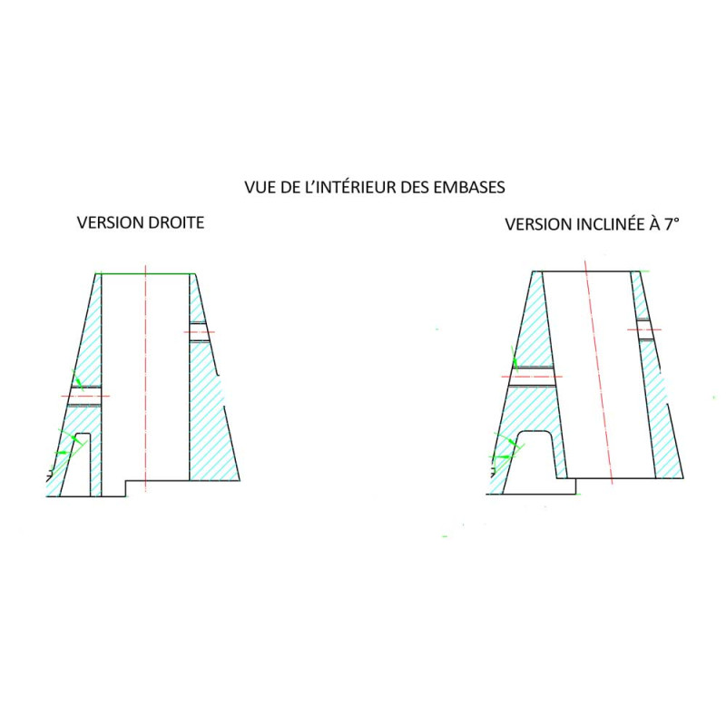Platines pour profilé de fargue standard. Vrsion droite ou inclinée.