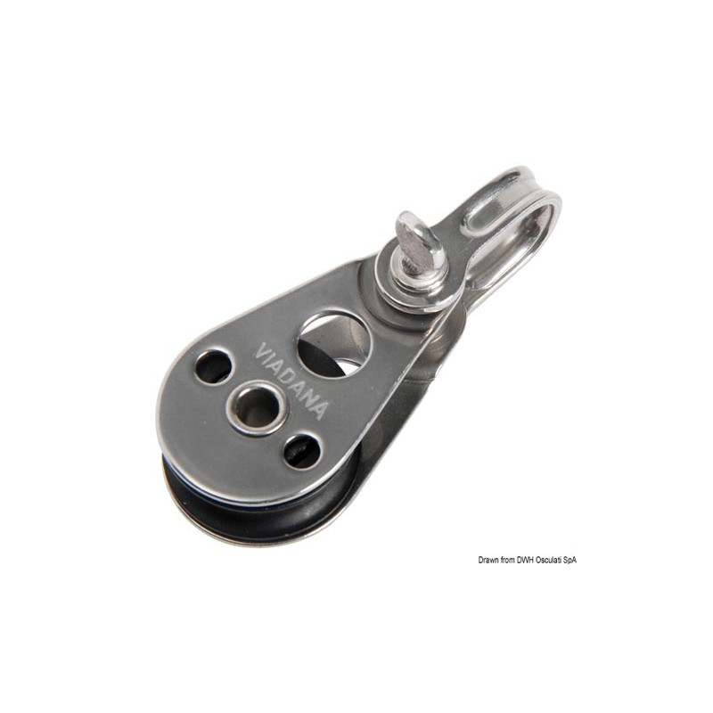 Poulies plates en inox avec réa pour câbles d'acier. Plusieurs versions au choix.