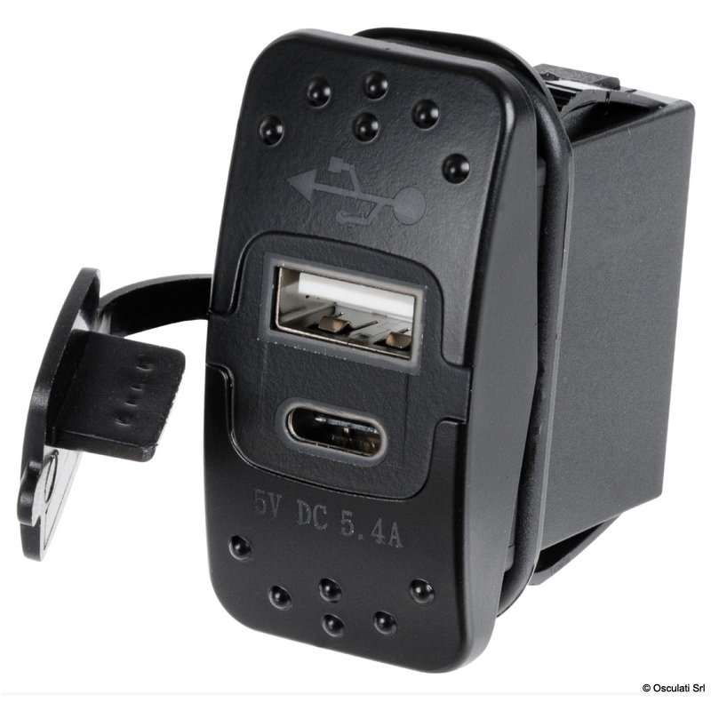 Prise double usb à utiliser avec les interrupteurs CARLINGSWITCH et MARINAR. Peut s'adapter à tous les types de cadres 14.197.xx. Dimensions :l 49x25x51 (profondeur) mm.