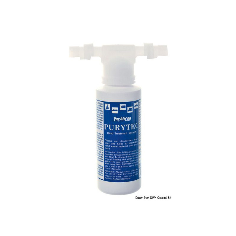 Il s'installe grâce à son support spécial en ligne sur le tuyau d'arrivée d'eau du WC (qu'il soit électrique ou manuel). L'eau de rinçage de la cuvette se trouve désinfectée et désodorisée. Flacon de 100 ml pouvant servir pour environ 400 remplissages. Support universel de 15/19 mm adapté à tous les toilettes.