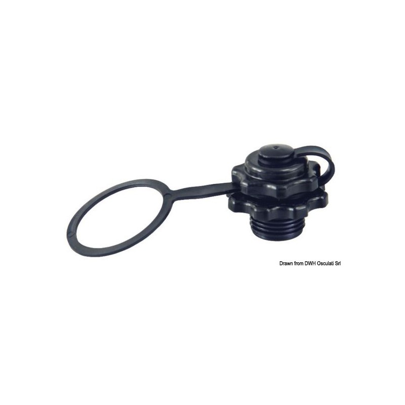Valve Boston : pour canots, kayak, tentes, et autres accesoires gonflables à basse pression. Valve en nylon noir. Ø 44 mm. Filetage de Ø M24x1,5. Hauteur 19,5 mm.