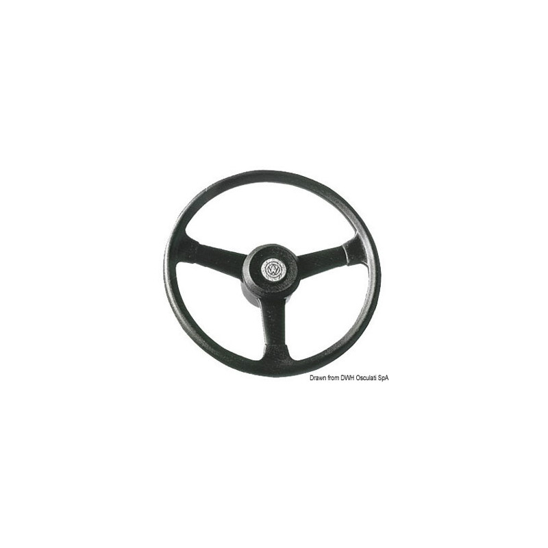Volant de 320 mm en plastique noir, très résistant.