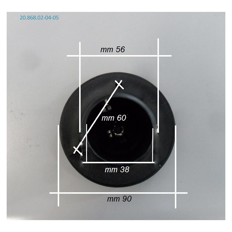 Le diamètre interne du pas de vis côté bouchon est de 38 mm, et externe côté cannelé (col à encastrer dans la paroi) de 56 mm.