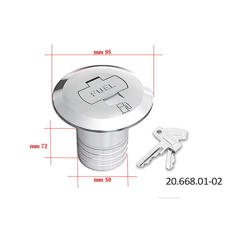 Nables en laiton chromé avec bouchon à clé. Droits ou inclinés. Ø externe 95 mm. Pour tous types de réservoirs. Plusieurs modèles disponibles.