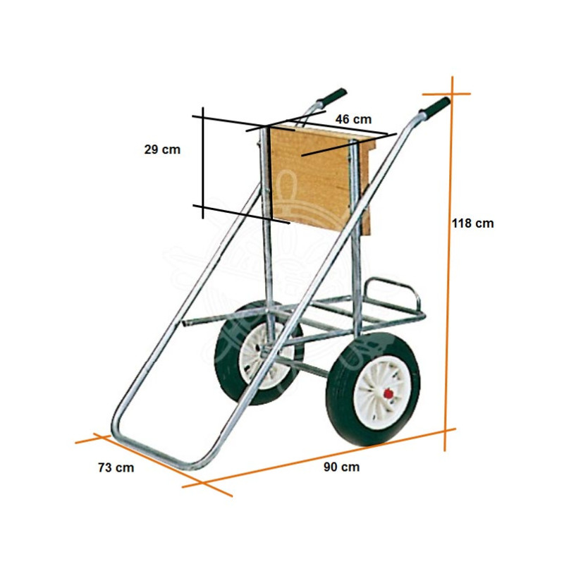 Chariot de transport moteur avec roues de ø 390 mm en nylon et caoutchouc et porte-réservoir.