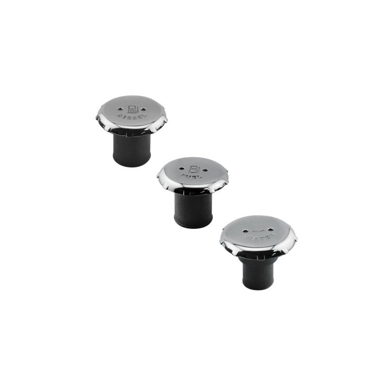 Disponible en diamètre 38 mm et 51 mm, et avec des bouchons ayant pour inscription FUEL, DIESEL ou WATER.