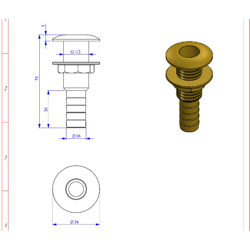 Dimensions (voir schéma) : A 16mm - B 28mm - C 70mm - D 38mm.