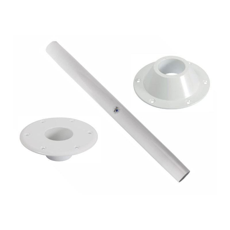 Constitué de deux bases en aluminium peintes en blanc (une externe et une à encastrer) + d'un tube en aluminium anodisé du modèle 48.418.01 peint en blanc.