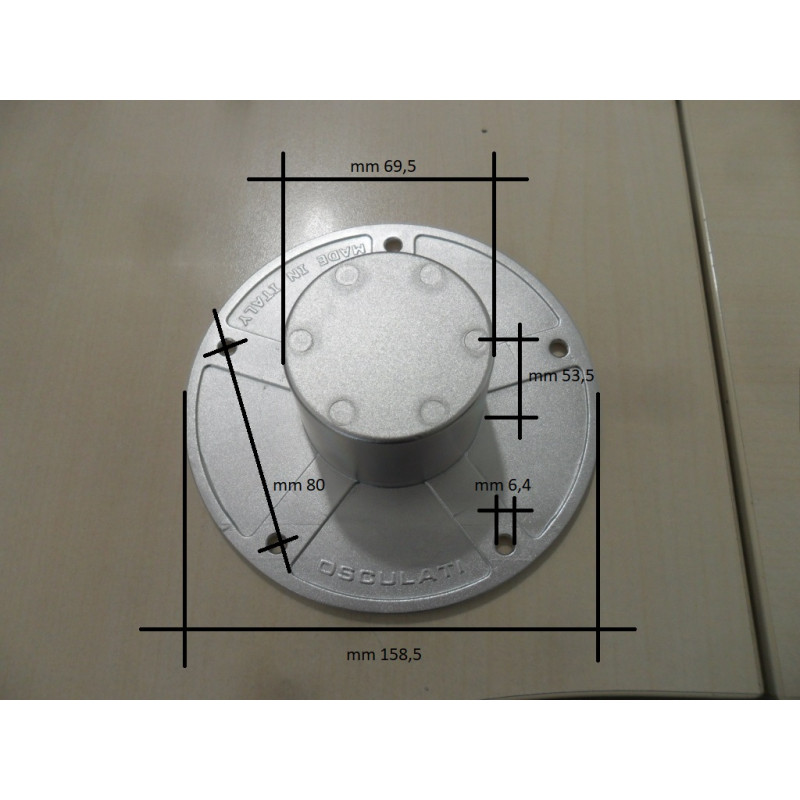 Ø base table 210 mm - Ø base encastrement au plancher 165 mm - Hauteur 70 cm.