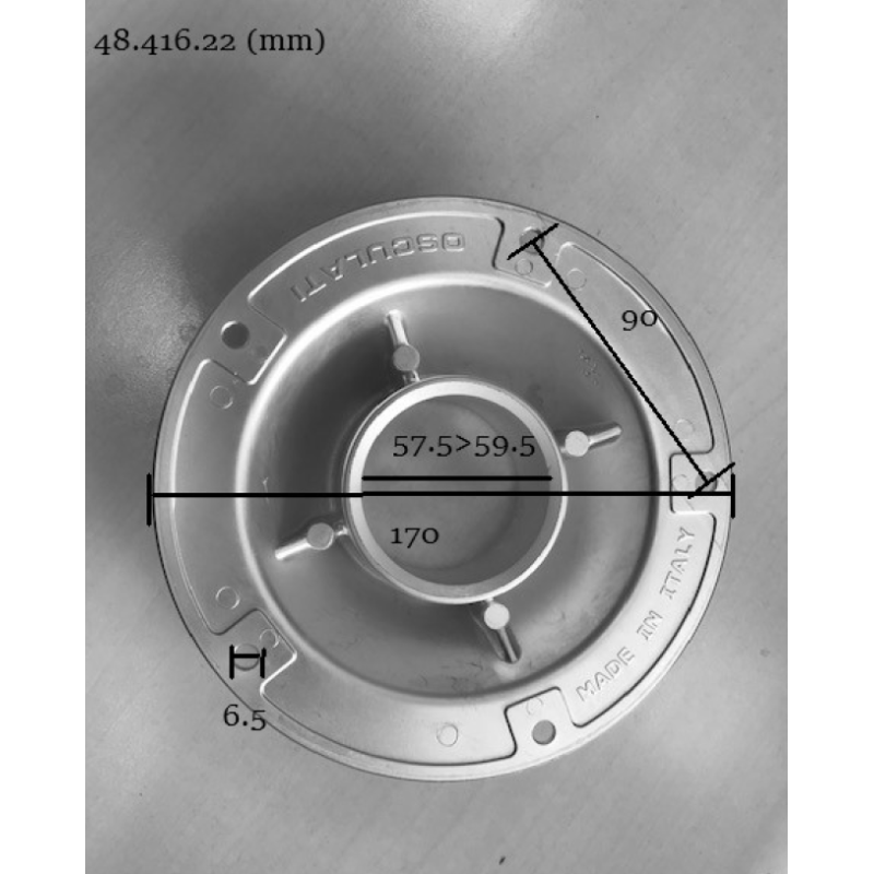Constitué de deux bases en aluminium anodisé (une externe et une à encastrer polie miroir) + d'un tube en aluminium anodisé d'un Ø de 60 mm, muni d'enclenchement conique.