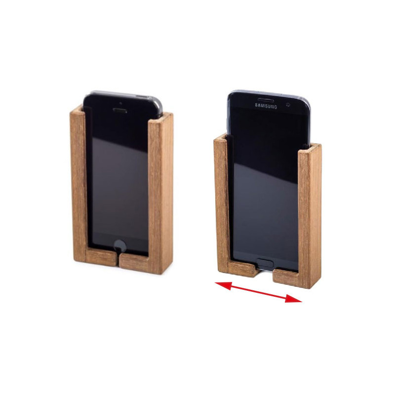 Nouveau support en teck pour smartphones – Modèle plus fin, réglable et universel.