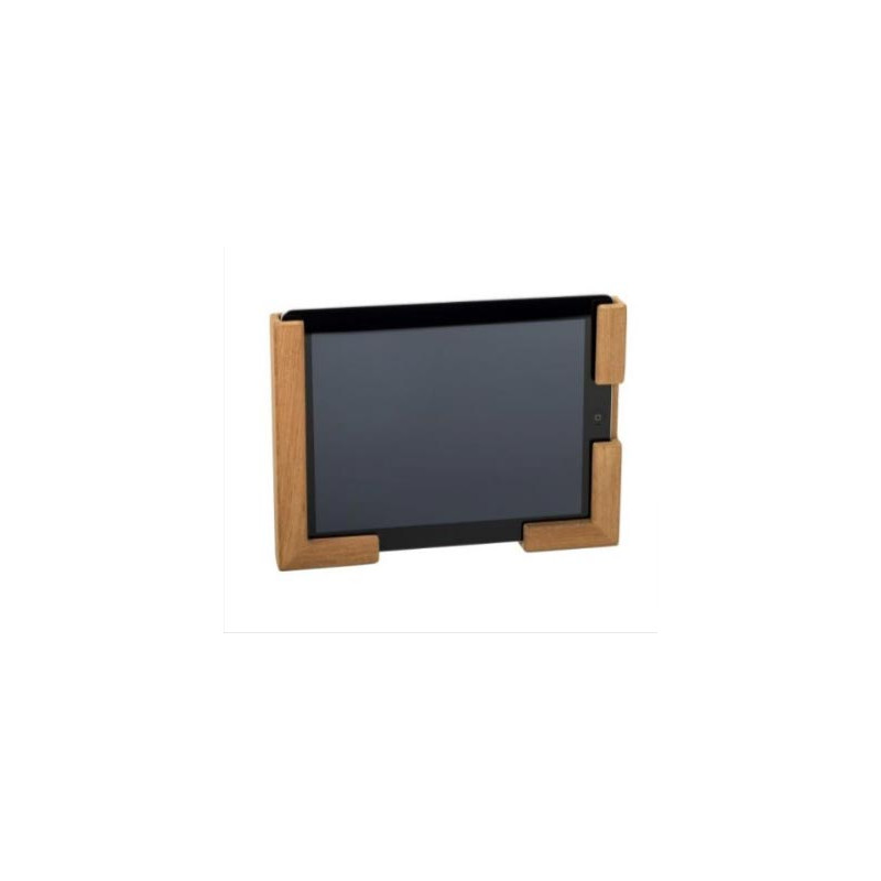 Porte-tablette universel pour tous modèles, en teck. En 2 parties, à fixer au mur.