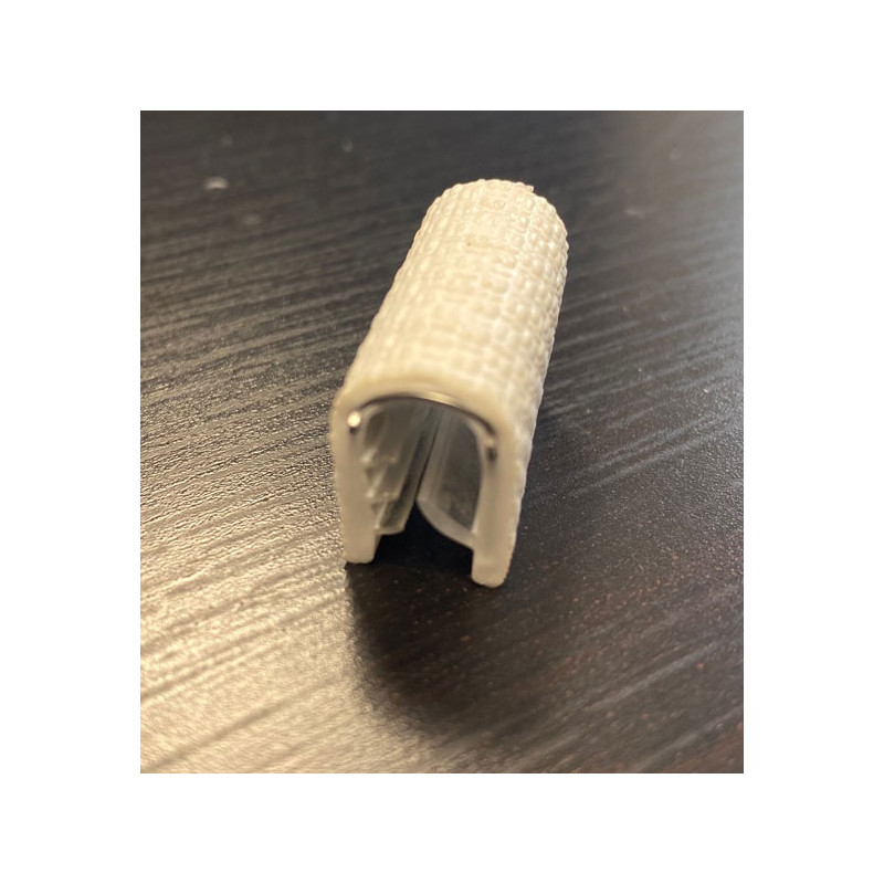 Profilé PVC semi-flexible pour entourer fibre de verre ou autres matériaux. Vendu en rouleau de 50 mètres.