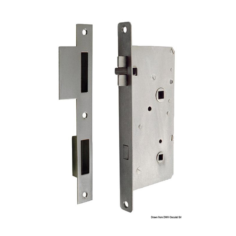 Kit serrure en laiton chromé satiné, pièces laminées en inox.