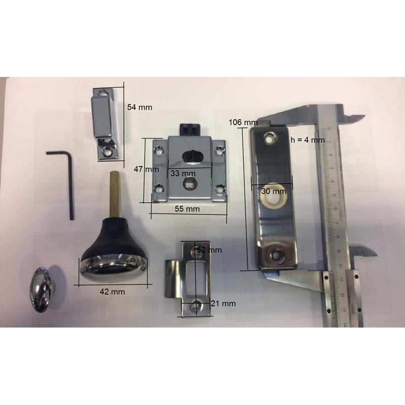 Kit serrure en laiton chromé + nylon chromé + inox.