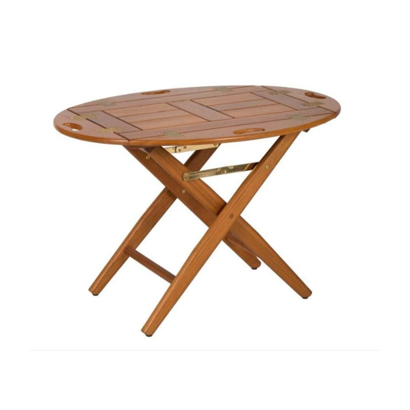 Table ovale en teck véritable avec poignées sur les côtés rabattables. Peut servir de plateau.
