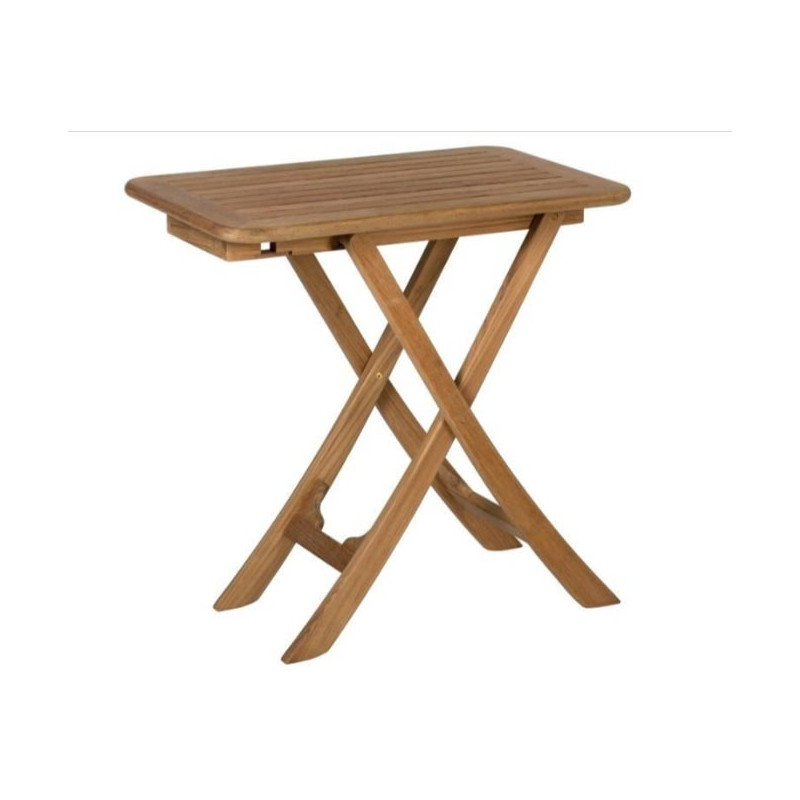 Table pliante en teck véritable, réglable en hauteur. 2 tailles disponibles.